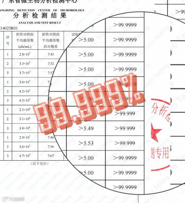 简单理解:杀菌率的百分比越高,可杀灭的细菌数量就越多!