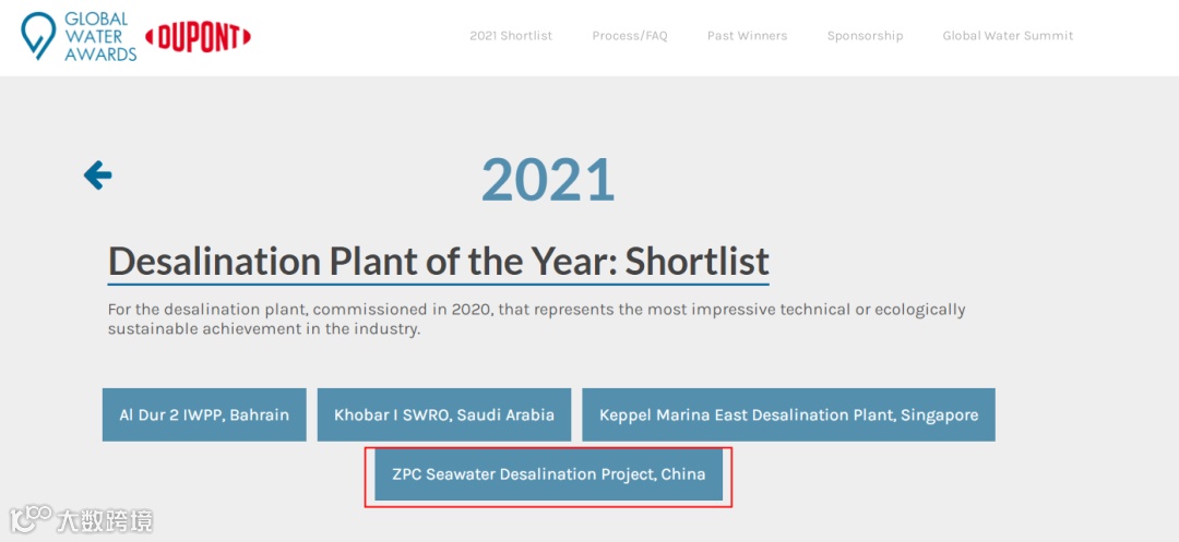 近日,杭州水处理承建的浙石化海水淡化项目入选由全球水业知名机构GWI组织评选的2021全球水奖(Global Water Awards)中“年度全球海水淡化项目”最终候选名单,目前正在投票阶段。