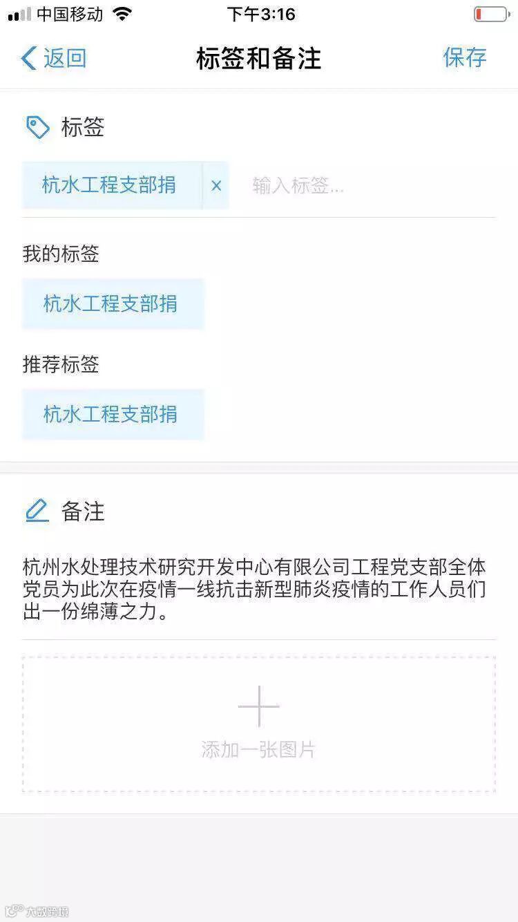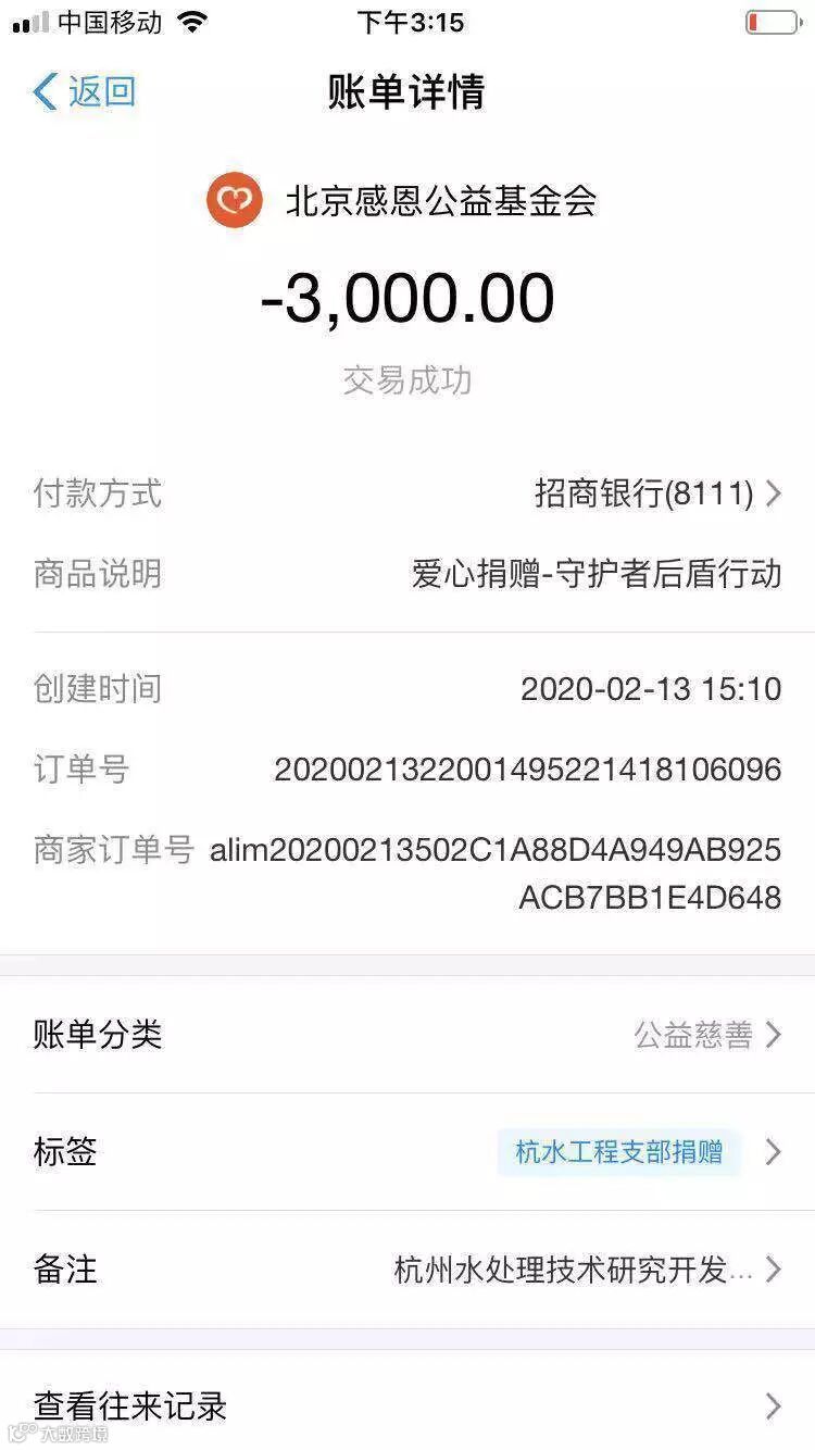 2月13日,工程党支部通过微信群召开党员大会,共同讨论如何在疫情中发挥出党员的力量。“疫情防控形势严峻,虽然我们不在一线,但心是火热的,只想出点力、尽点心”;“危难时期,共产党员就应该冲锋在前,现在买不到防控物资,就先捐款支援疫情防控”;“作表率、凝合力,共克时艰”……这些是支部党员们普遍的心声。经党员大会商议,大家一致同意将支部的2000元先进党支部奖励和党员捐资助学贫困学子剩余的1000元全部援助疫区。当天下午,支委通过“支付宝-爱心捐赠-守护者后盾行动”平台完成爱心捐款,这笔捐款将变成一份温暖的力量驰援武汉疫区。这笔钱对于抗击疫情实际需要而言无疑是杯水车薪,但这却体现了工程党支部全体党员以实际行动支援疫区的坚定决心。