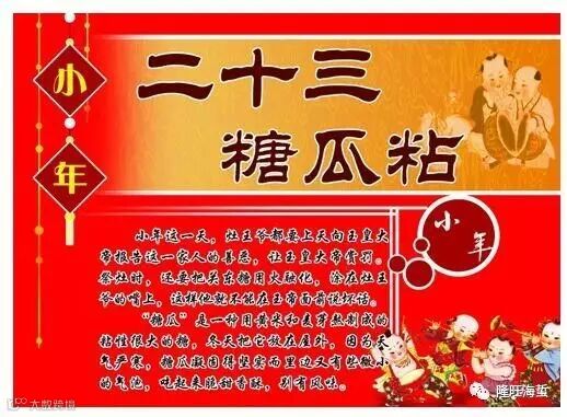 腊月二十三,又称“小年”,是汉族民间祭灶的日子。汉族民间有“男不拜月,女不祭灶”的习俗,因此祭灶王爷,只限于男子。民谣曰:“张王李赵,二十三祭灶。”吃了祭灶的糖瓜,拜了灶老爷,就要热火朝天地投入迎新年的忙碌中了