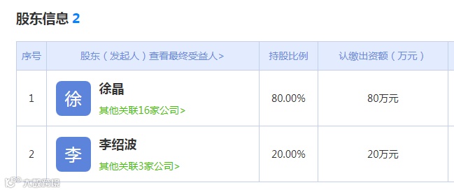 通过企盾宝股权穿透功能,可以发现山西龙之门教育科技有限公司一共只有两位股东,分别为法人代表徐晶和李绍波,其中徐晶为大股东,占比80%,李绍波占股20%。值得注意的是,据公司2021年年报显示,该公司参保人数为0人。