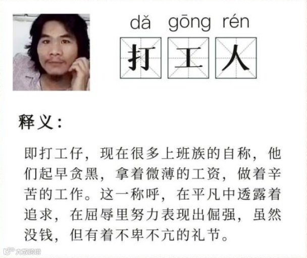 打工人,打工魂,打工人是人上人!最近“打工人”火了,相信大家都在网上有所耳闻。“打工人”一夜之间变成了网络流行语,“打工人”是什么呢?泛指所有受雇于人的劳动者,无论是在工地搬砖的工人,还是坐在办公室“996”的白领,亦或是中层领导,甚至是创业者,都可以自称“打工人”。