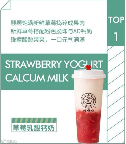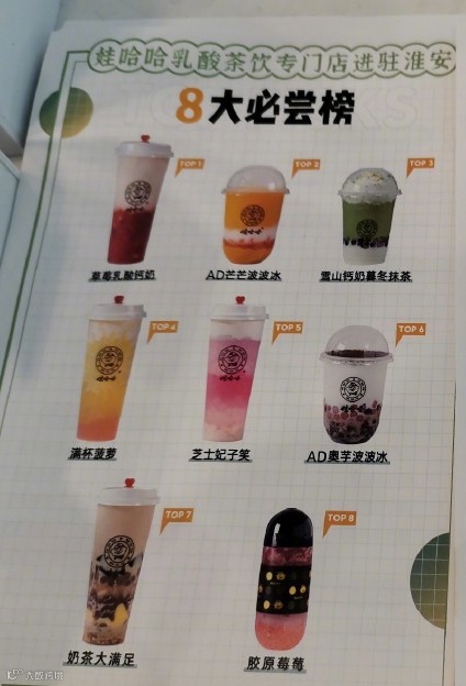 那经典的娃哈哈LOGO以及存在感极强的AD钙奶元素,辨识度很高。娃哈哈奶茶也不出所料的,以AD钙奶作为灵感元素,主打乳酸系列茶饮,几款热门饮品都有用到AD钙奶制作。