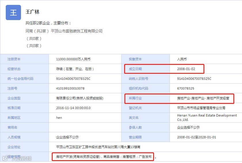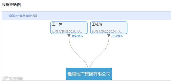据企盾宝资料显示,豫森城原开发商为豫森地产集团有限公司,该公司成立于2008年,公司法定代表人为王广林。其中王广林占公司80%的股份,王钰鸽占公司20%的股份。