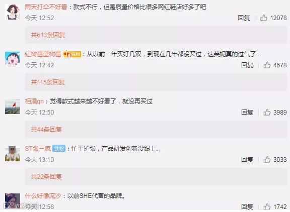最后,还有非常重要的一点,就是达芙妮无法适应消费结构的变化,作为曾经引领时尚尖端的女鞋品牌,这些年达芙妮鞋子的品质日渐下降,设计老旧,已经很难获得消费者青睐了。