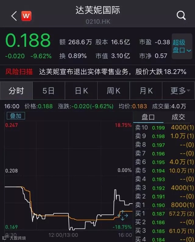 达芙妮国际从2012年巅峰时期的6881家门店,减少至如今的不到300家。其中,仅2019年,达芙妮国际门店总数就从2820家就收缩至425家,日均关店6家。受此消息影响,8月26日,达芙妮国际开盘大跌,截至收盘,该个股跌幅9.62%。