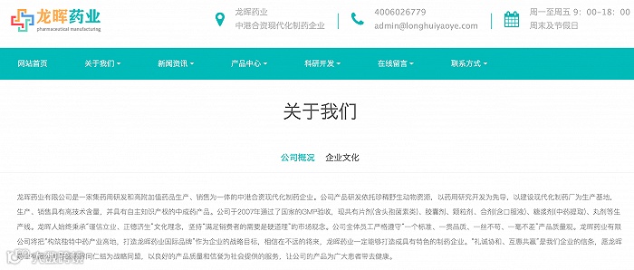 而在龙晖集团旗下,有一家名为龙晖药业的药企,该公司是一家“依托珍稀野生动物资源”的医药企业。目前龙晖药业拥有中西药品批准文号100多个,但值得关注的是,龙晖药业官网自称是一家“集药用研发和高附加值药品生产、销售为一体的中港合资现代化制药企业”,公司产品研发“依托珍稀野生动物资源”,以药用研究开发为先导,并具有自主知识产权的“中成药产品”。