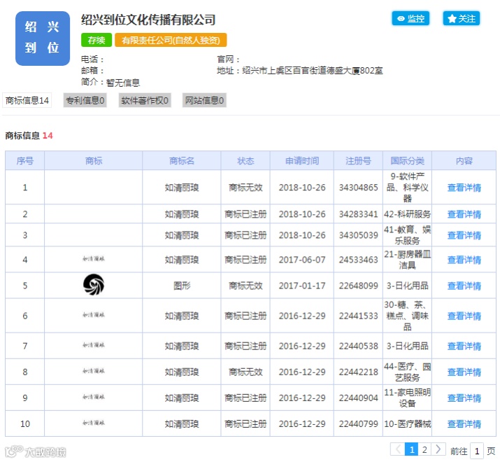 此外,岑同学的简介还自称是数个品牌的创始人,其中一个为“如清丽琅”。据企盾宝调查,岑同学担任创始人的“如清丽琅”品牌,隶属于绍兴到位文化传播有限公司,法人代表为岑刚灿,而岑刚灿就是岑同学的父亲。