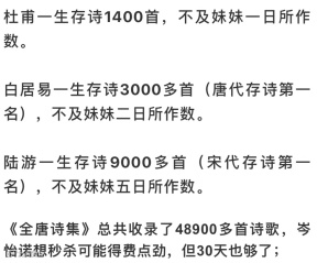 但是,这位16岁小神童的作诗效率完全碾压乾隆,按照她的速度,平均每43.2秒就能写出一首诗,20多天就能赶上乾隆爷一辈子的作诗量。而且她的简介上还特地强调了“目前”,不保证以后会不会加速。这已经不是“后浪”了,完全可以称得上“海啸”。至于小神童的文风如何,网上能搜到的是这样的: