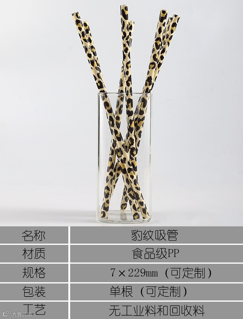 导读:豹纹吸管浅棕色豹纹图案 欧美新款切口平整规格齐全 全家人都适用印刷清晰颜色艳丽 多种颜色可选产品