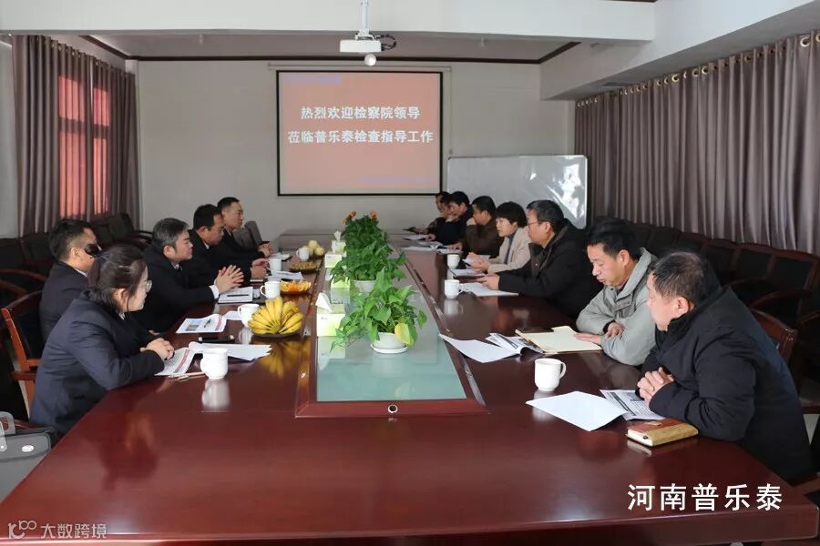 今天上午,河南普乐泰迎来以王朝辉检察长为首的淇县人民检察院一行领导到公司座谈指导工作,公司董事长杜总、常务冯总及各业务板块负责人一起参加了座谈会。