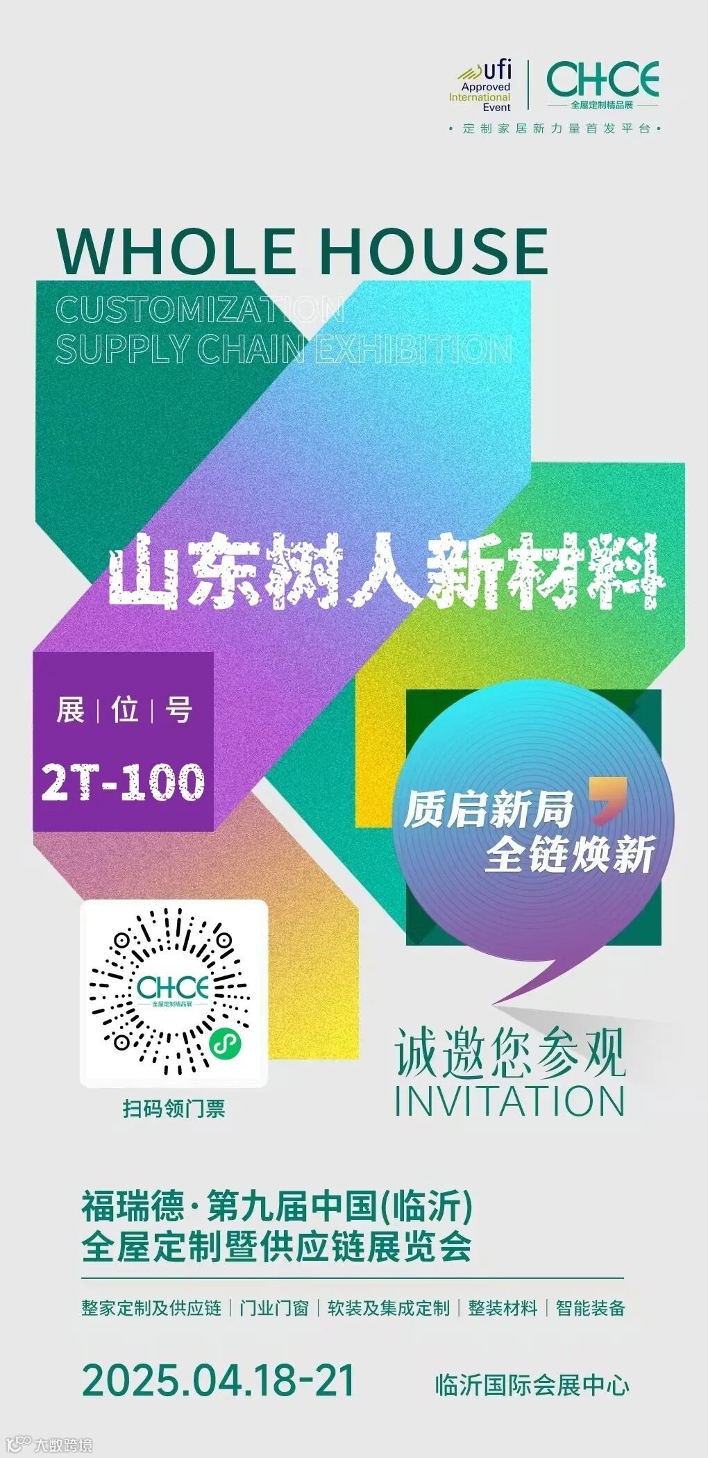 4月18-21日,树人新材料受邀在临沂国际会展中心参加本次第九届中国(临沂)全屋定制暨供应链展会,同时将亮相于2T-100展位。