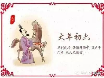 禁忌:大年初六没有任何的禁忌,属于好日子,大家不必要忌讳什么,放心的宴请朋友,或者去做客。旅游,采购,也是不错的选择。