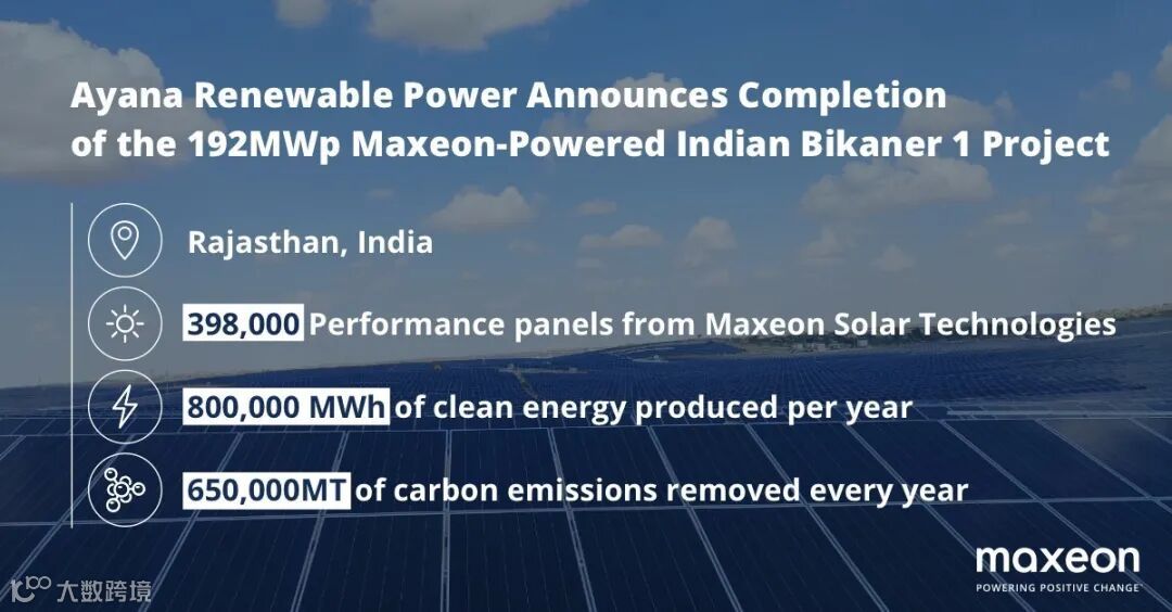 3月11日,Ayana Renewable Power 和 Maxeon Solar Technologies 共同宣布位于位于印度拉贾斯坦邦的 192MW Bikaner 1 太阳能电站并网并开始商业化运营。