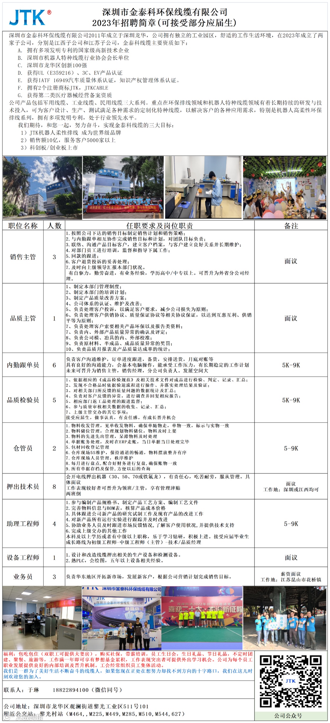 深圳市金泰科环保线缆有限公司2011年成立于深圳龙华,是拥有多项发明专利的国家级高新技术企业;主要生产销售:机器人柔性线缆、军用航空电缆、汽车线缆、3C国标线、UL电子线、消费类电子线等;公司资质齐全,可供应广大客户用线需求。