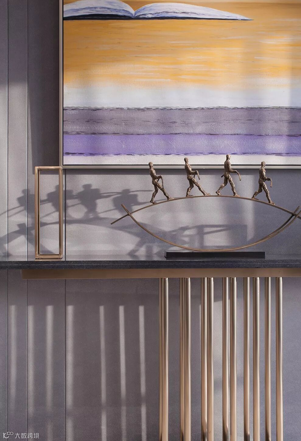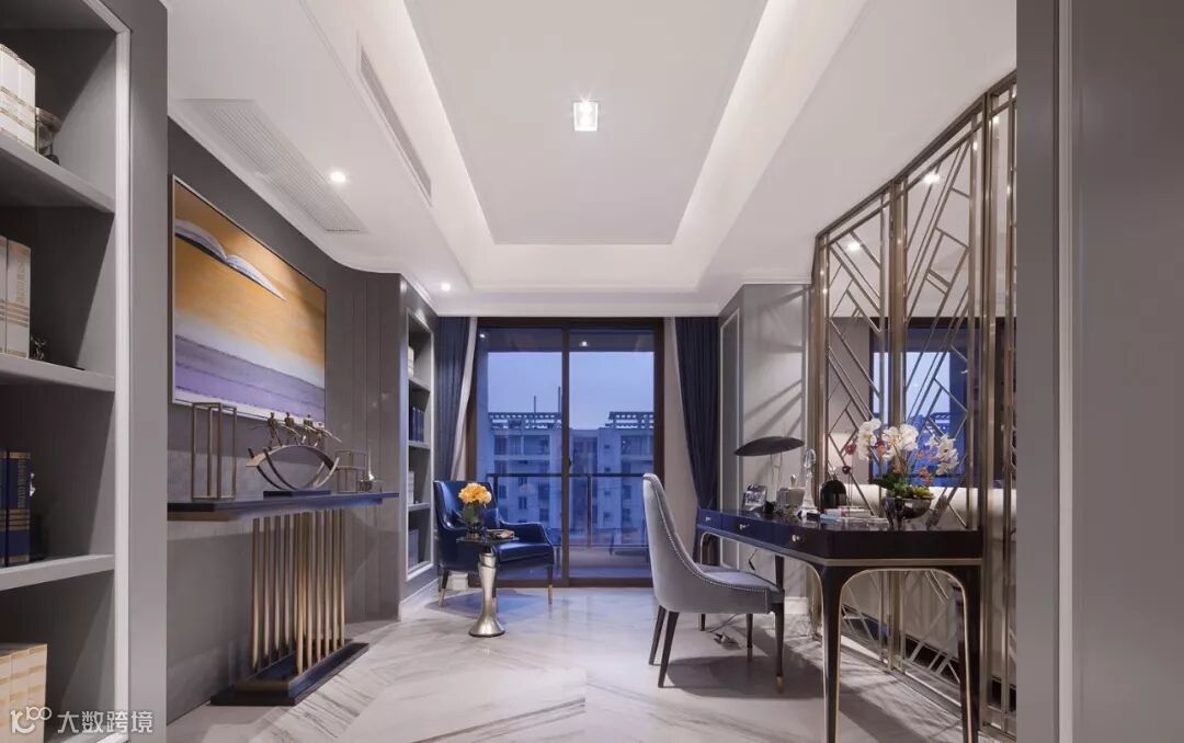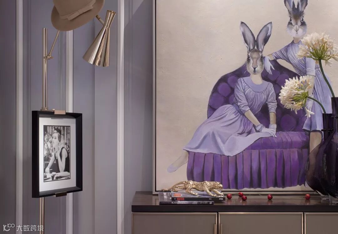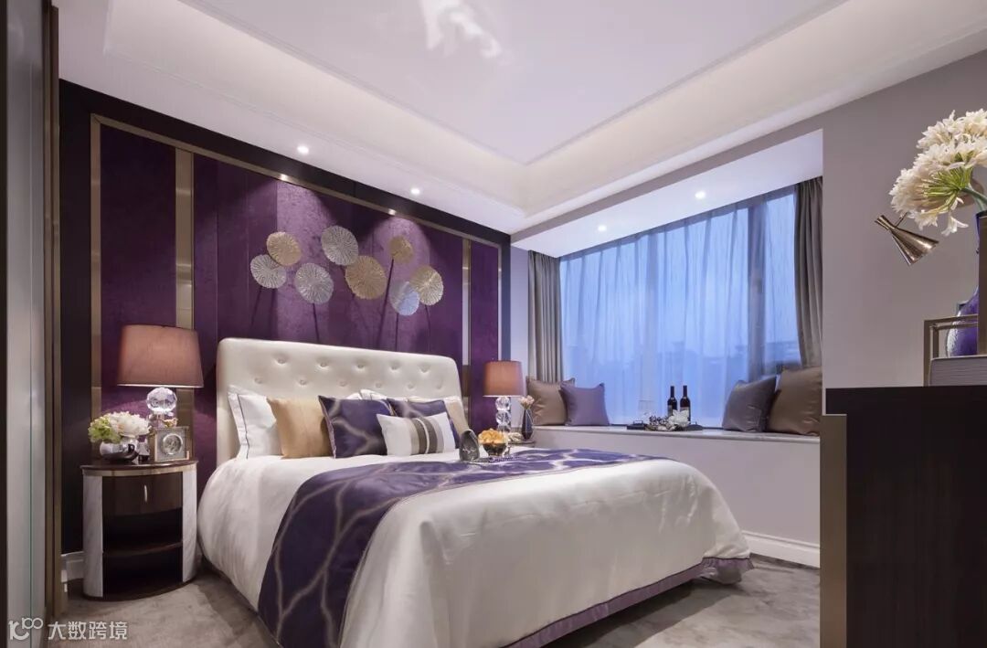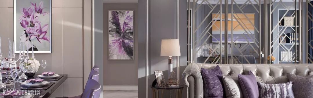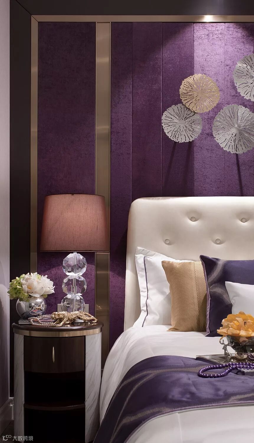 浪漫优雅的紫色调,为空间营造一份静谧的美感,浪漫紫的背景墙板,与整体色系和谐交融,烘托出自然沉稳而不失高贵的气场,又蕴藏诸多质感层次的碰撞与转换。