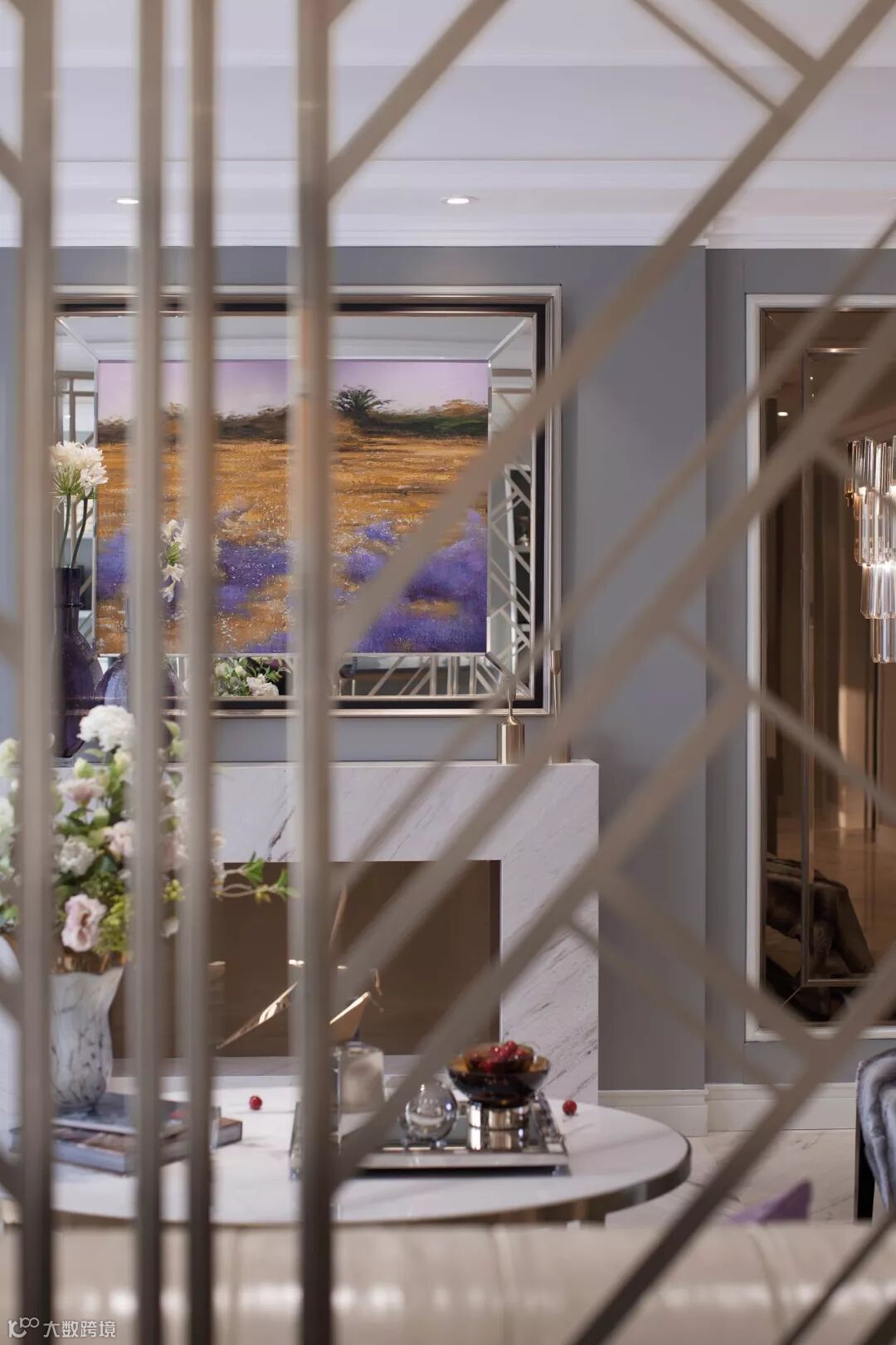 进门玄关墙面装饰画和金属屏风,搭配上柔和淡雅的色调,加以细腻精美的家具让空间凝聚优雅古典情怀。