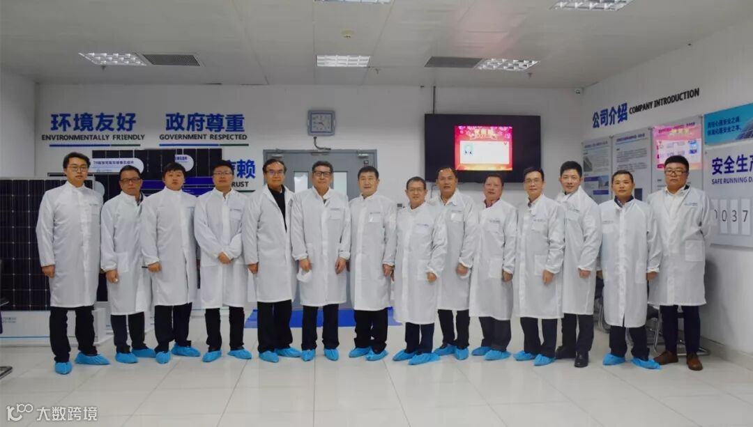 会谈后,吴旭总经理一行在林光平董事长的陪同下参观考察了公司高效叠瓦组件车间,详细了解了高效叠瓦组件的生产工艺流程和技术优势。