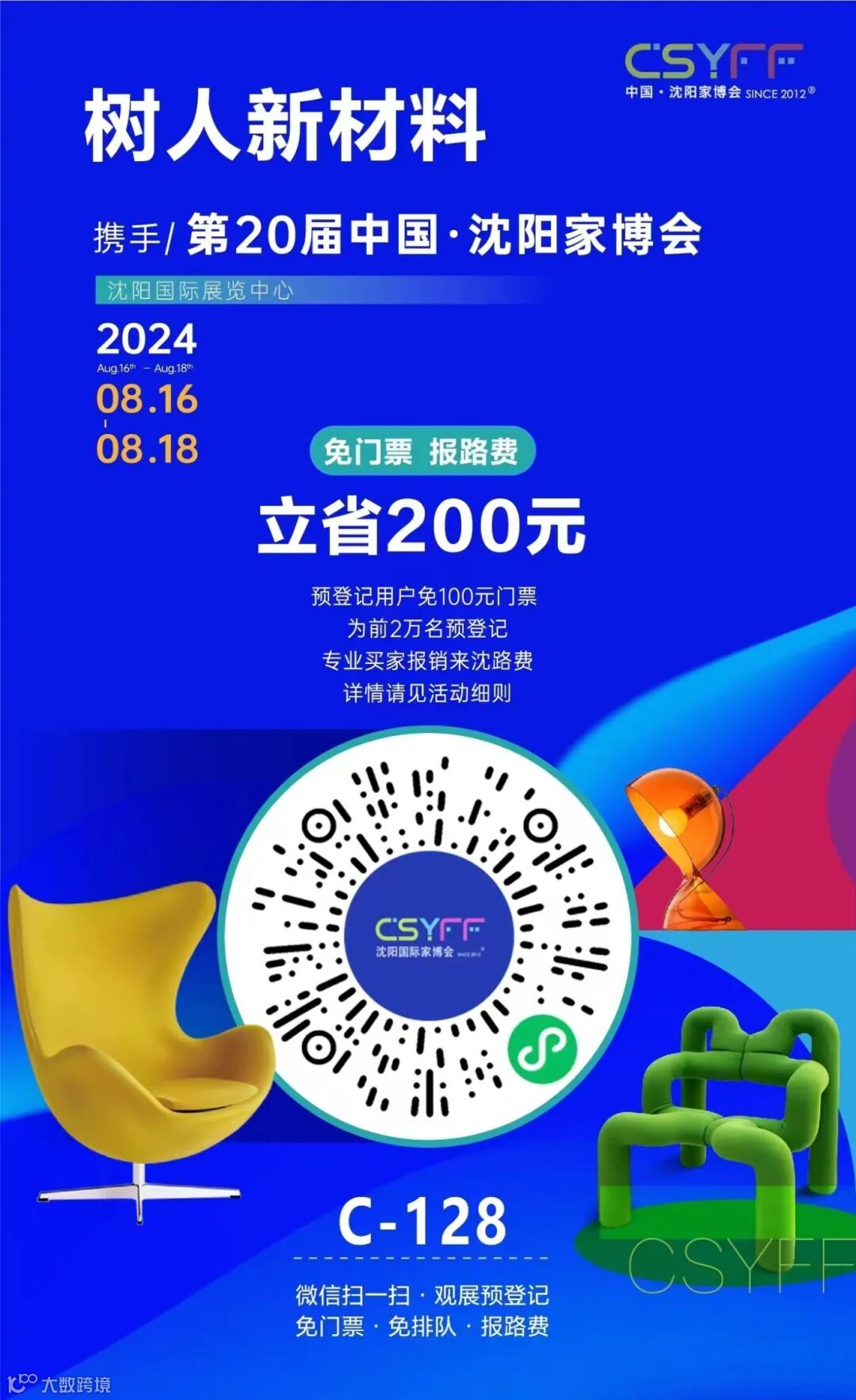 中国(沈阳)国际家具博览会一直以来都是家具行业的一大盛事,山东树人新材料有限公司作为封边热熔胶行业的最具潜力的胶粘剂制造商,也将强势入驻本届家博会。
