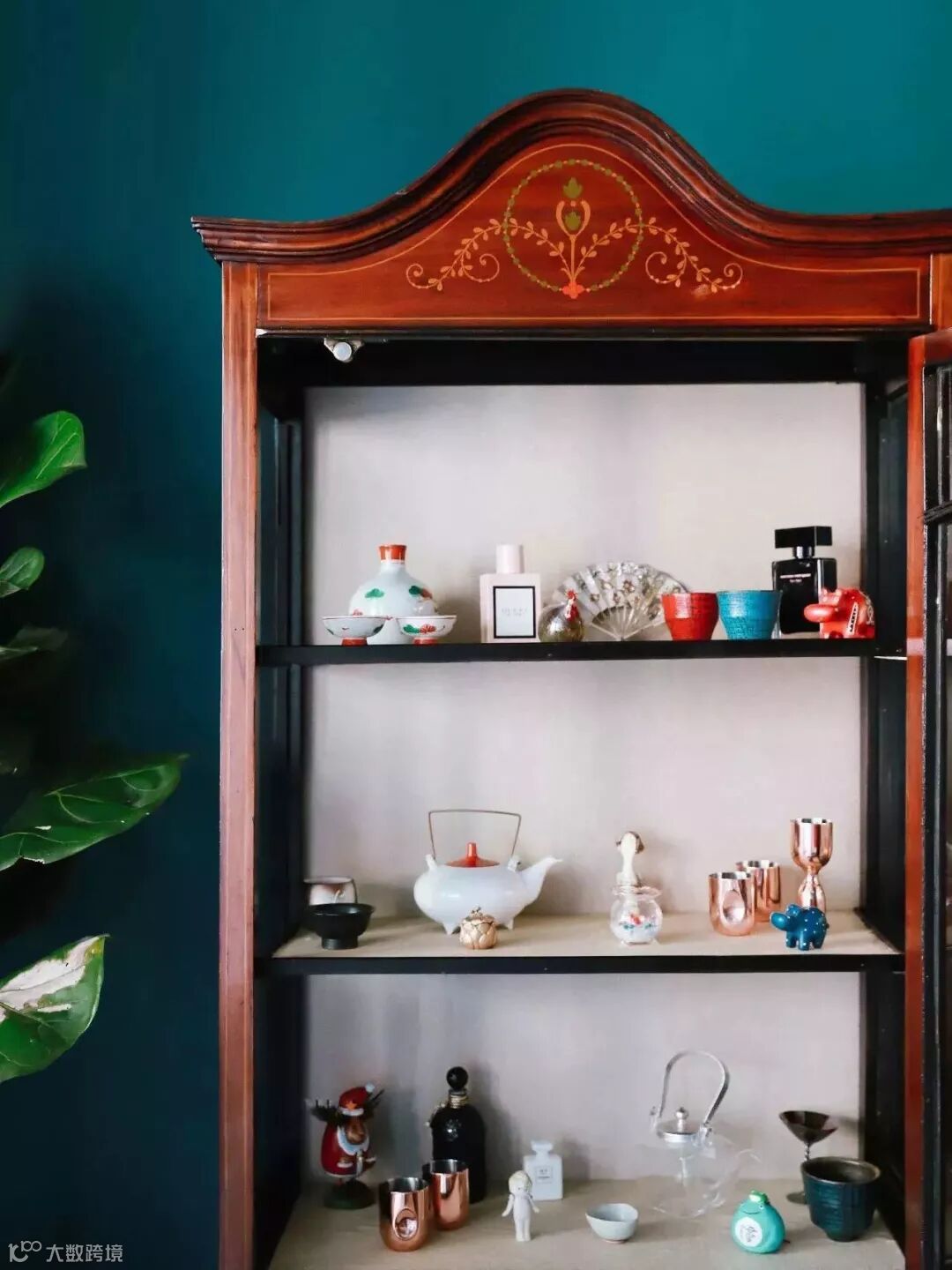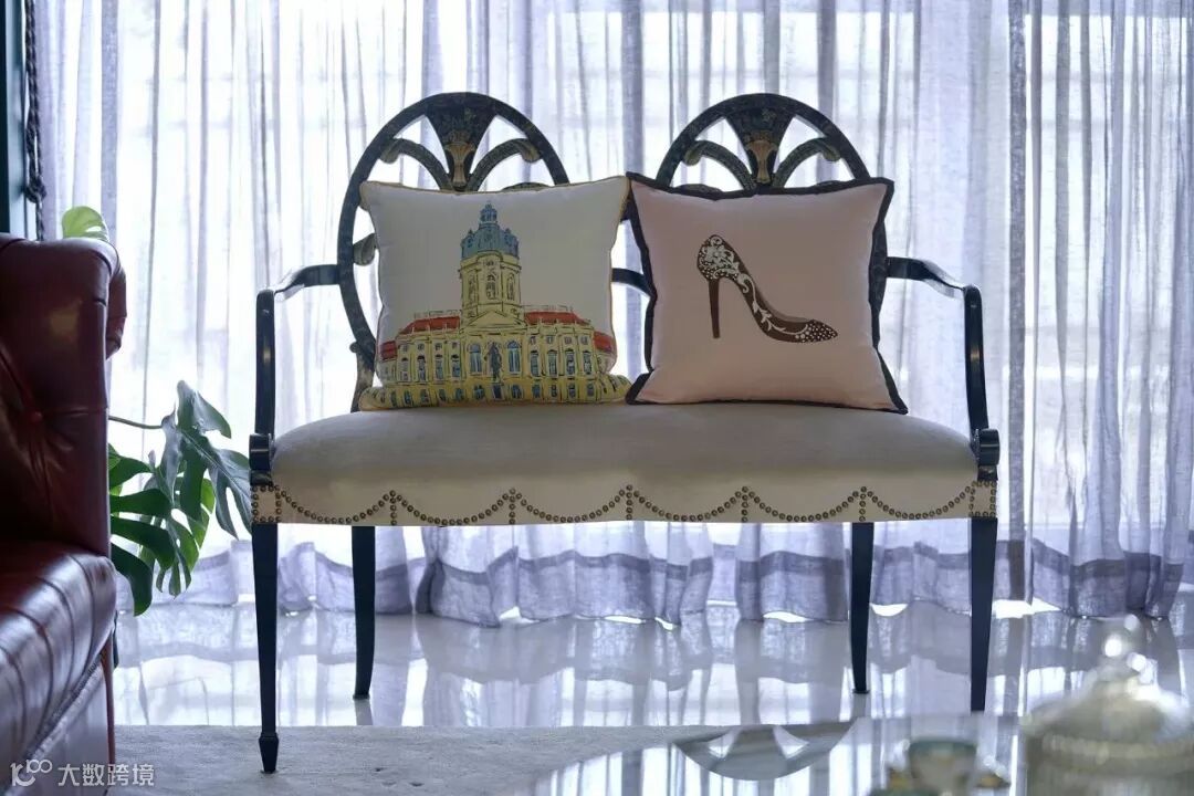 客厅里有一个维多利亚时期的小柜子,里面放置一些有趣的小物件,给生活加点小乐趣。