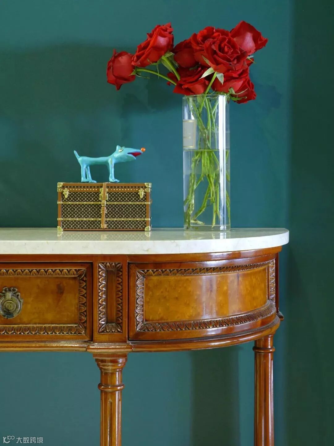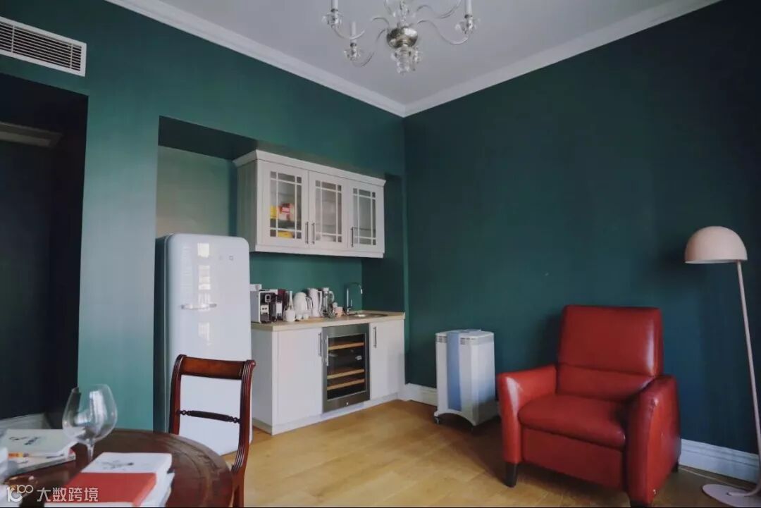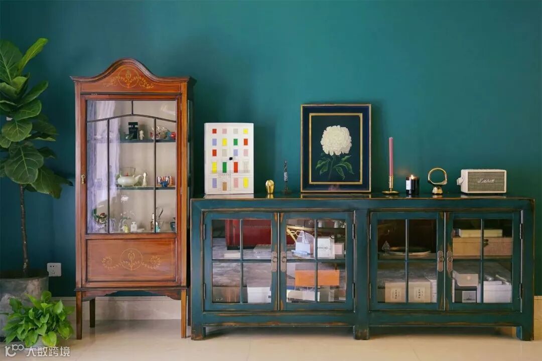 一些柜子是偏红木色,它跟绿色搭起来,也会产生一种比较古典的视觉触感。