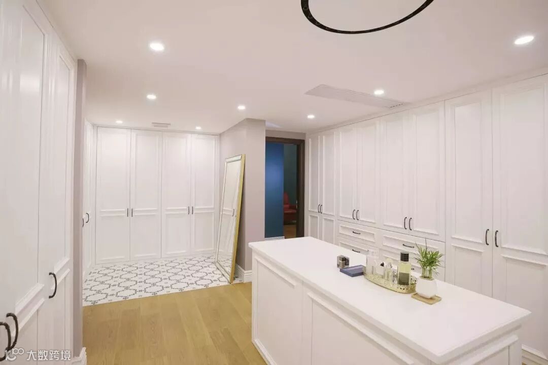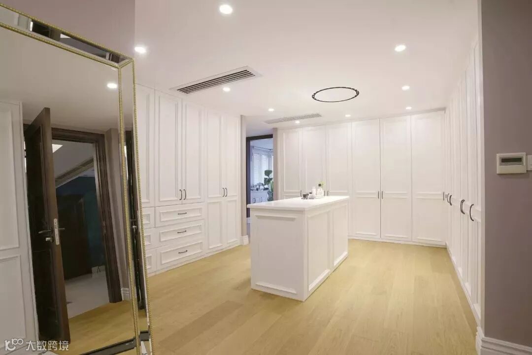 衣帽间为全白,整体空间看起来干净、明亮,视觉上更开阔。