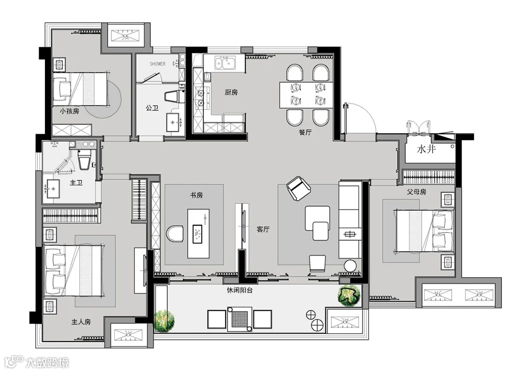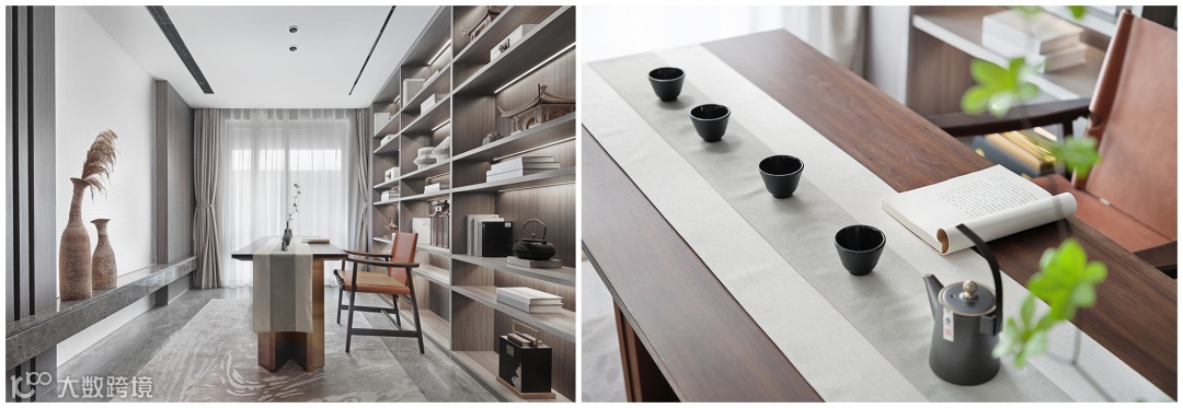 开放式的书房顺势而为,与客厅融为一体。当代感的艺术装饰 ,彰显居者的气质与品味。