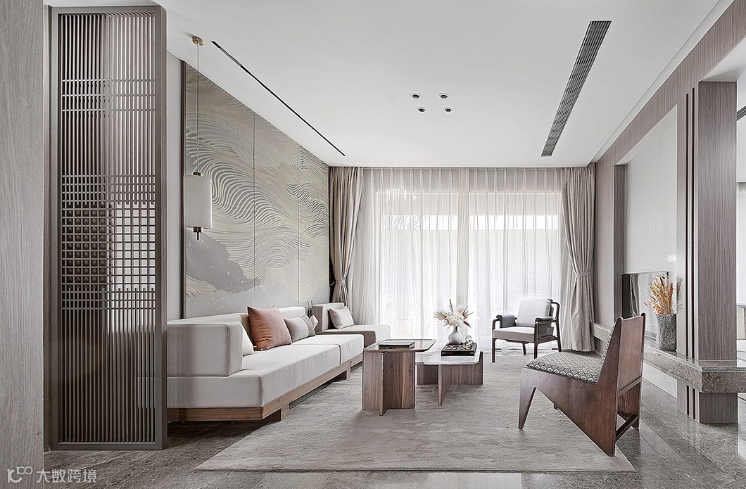 将中式元素与现代材质巧妙兼柔,铸就现代的东方之美 ,营造出如水墨画般朦胧的诗意美。隔绝一切喧嚣杂念,回归最真实的恬淡心境。