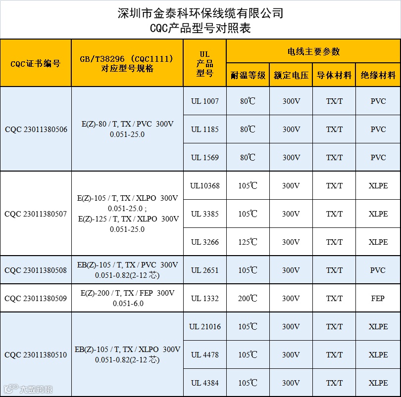 深圳市金泰科环保线缆有限公司2011年成立于深圳龙华,是拥有多项发明专利的国家级高新技术企业;主要生产销售:机器人柔性线缆、军用航空电缆、汽车线缆、3C国标线、UL电子线、消费类电子线等;公司资质齐全,可供应广大客户用线需求。