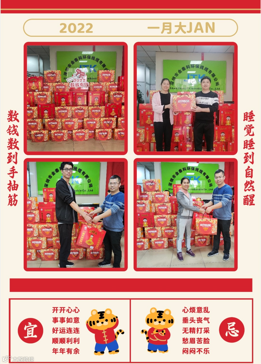 今年的春节额外让人心潮澎湃,因为很多人因为疫情影响,已经两年都没有回家与家人共度佳节了,我司领导深知每位员工此刻都归心似箭,故今年决定早点放假,让大家可以早点踏上回乡之路,公司工会委员会也早早的为大家准备好了丰盛的节日大礼包,让每位金泰科员工都满载而归。