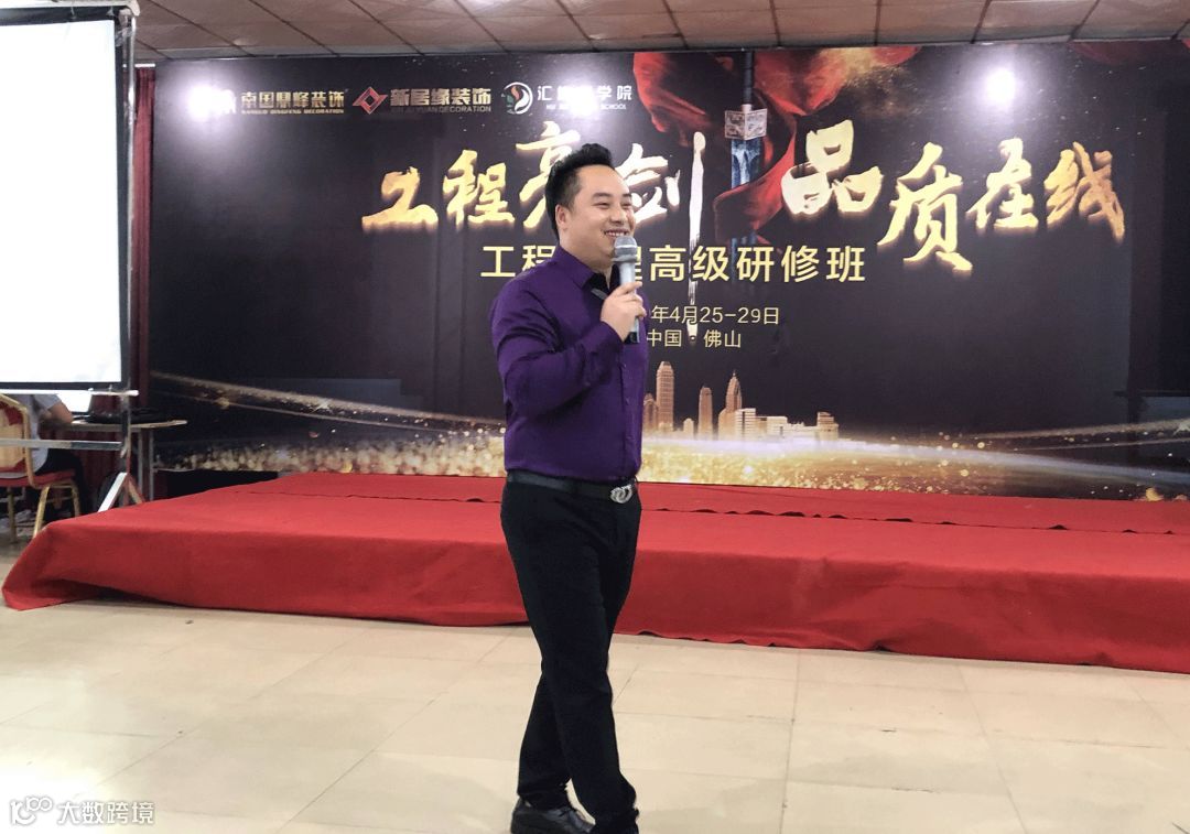 集团总部工程总督导叶存斌分享“工程管理”,重点强调“制定施工进度计划表”“客户满意度”“内部公平竞争机制”几个方面,统一工程标准化管理。
