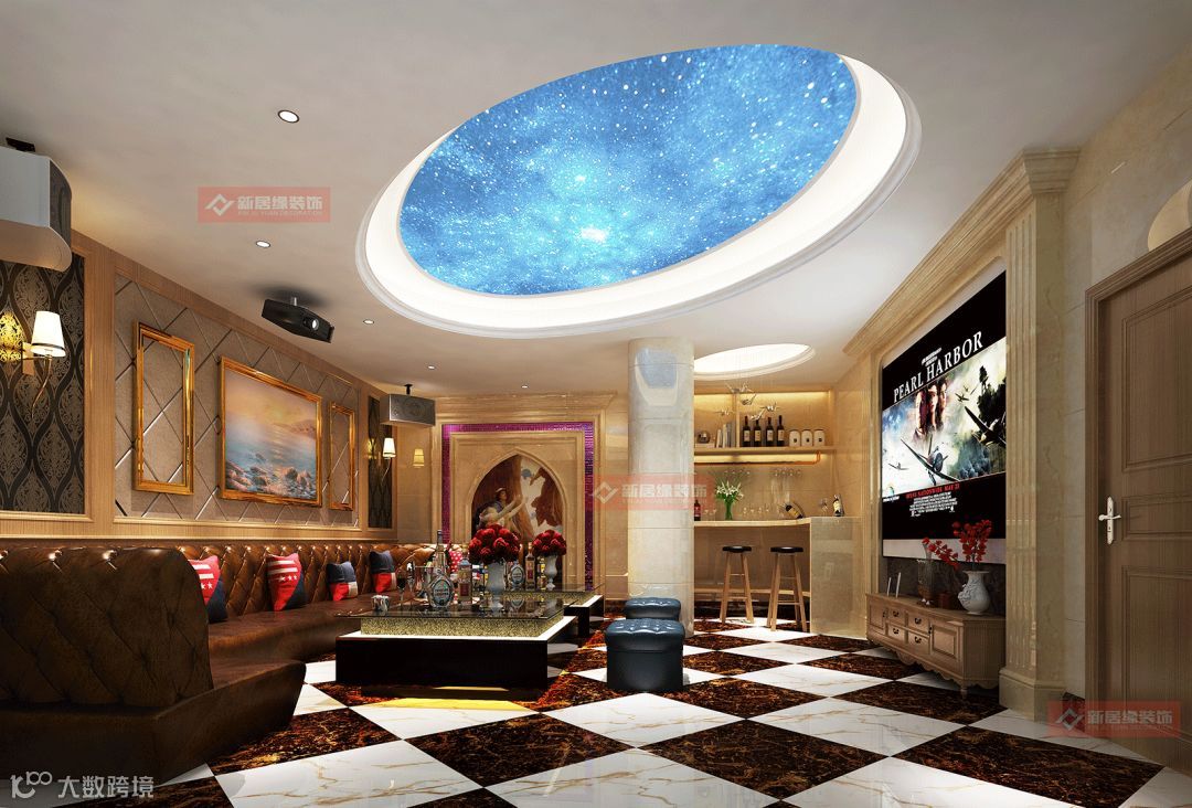 在影视厅设迷你吧台,增加空间娱乐功能,在整体空间艳丽的视感中,烘托出纵享生活的气息。