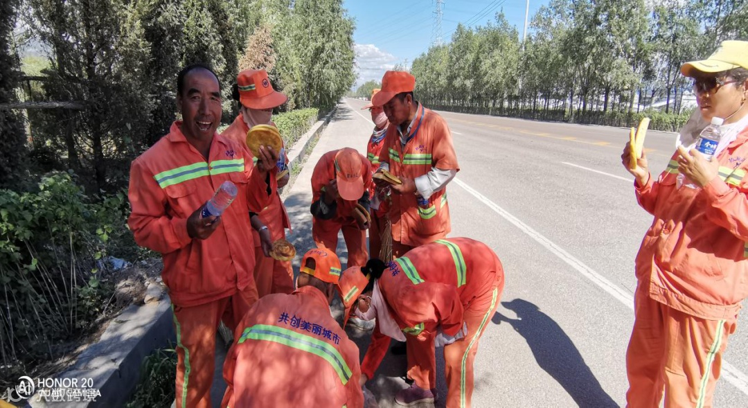 清扫保洁的过程中,大家每个人都积极配合,用不怕苦、不怕累的精神辛勤作业,由于园区距离城区路程较远,中午大家就在马路边吃饭休息,公司为每位员工准备了糖饼、油条和矿泉水等工作简餐。午餐虽简单,但是为了迎接园区开工仪式,展现干净整洁的园区环境和形象,大家都没有怨言。