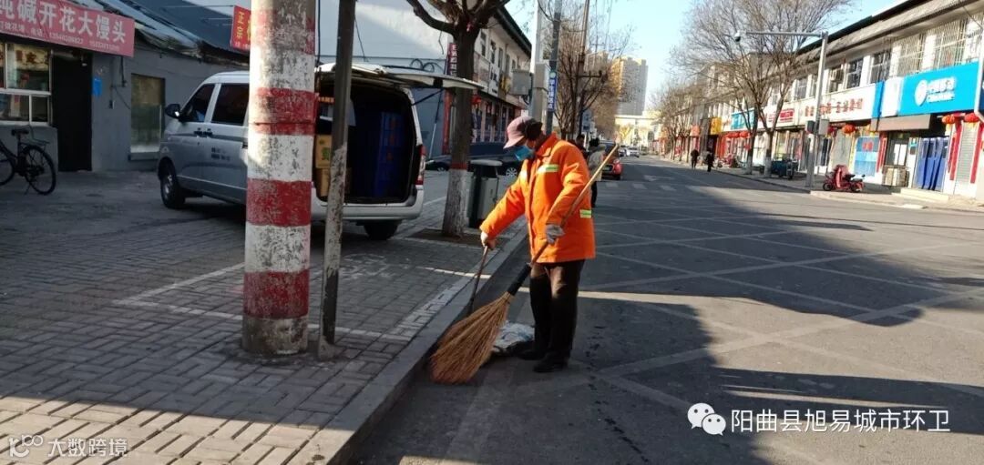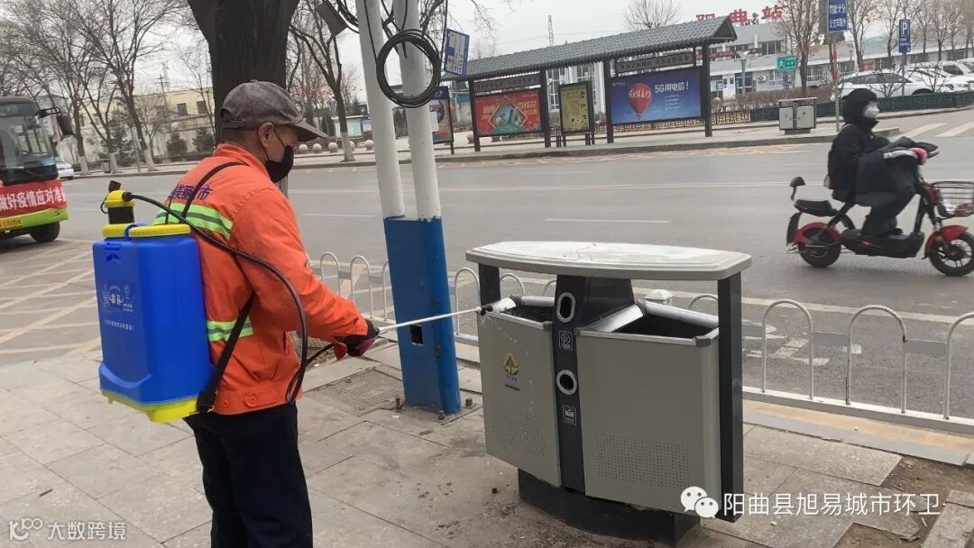 阳曲县城区大街小巷很容易发现身着橙色环卫服的环卫工人。与平时不同的是,他们不仅负责清扫保洁,还在对街道各处进行消毒清洗。
