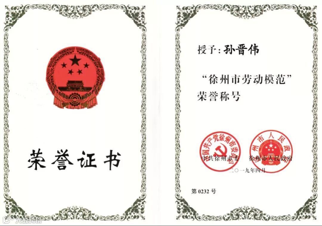 今年“五一”前,市委、市政府表彰了2016-2018年度徐州市劳动模范和先进集体。会上,我司孙晋伟同志被授予“徐州市劳动模范”荣誉称号。