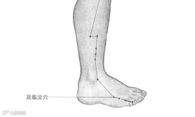 足临泣穴就在第四脚趾和小脚趾之间缝的终点,取穴方法是将手指从四脚趾和小脚趾之间的缝向脚背方向推,推到有骨头的边缘时就是足临泣穴。阳辅穴在小腿的外侧,脚外踝关节上方四寸的位置。