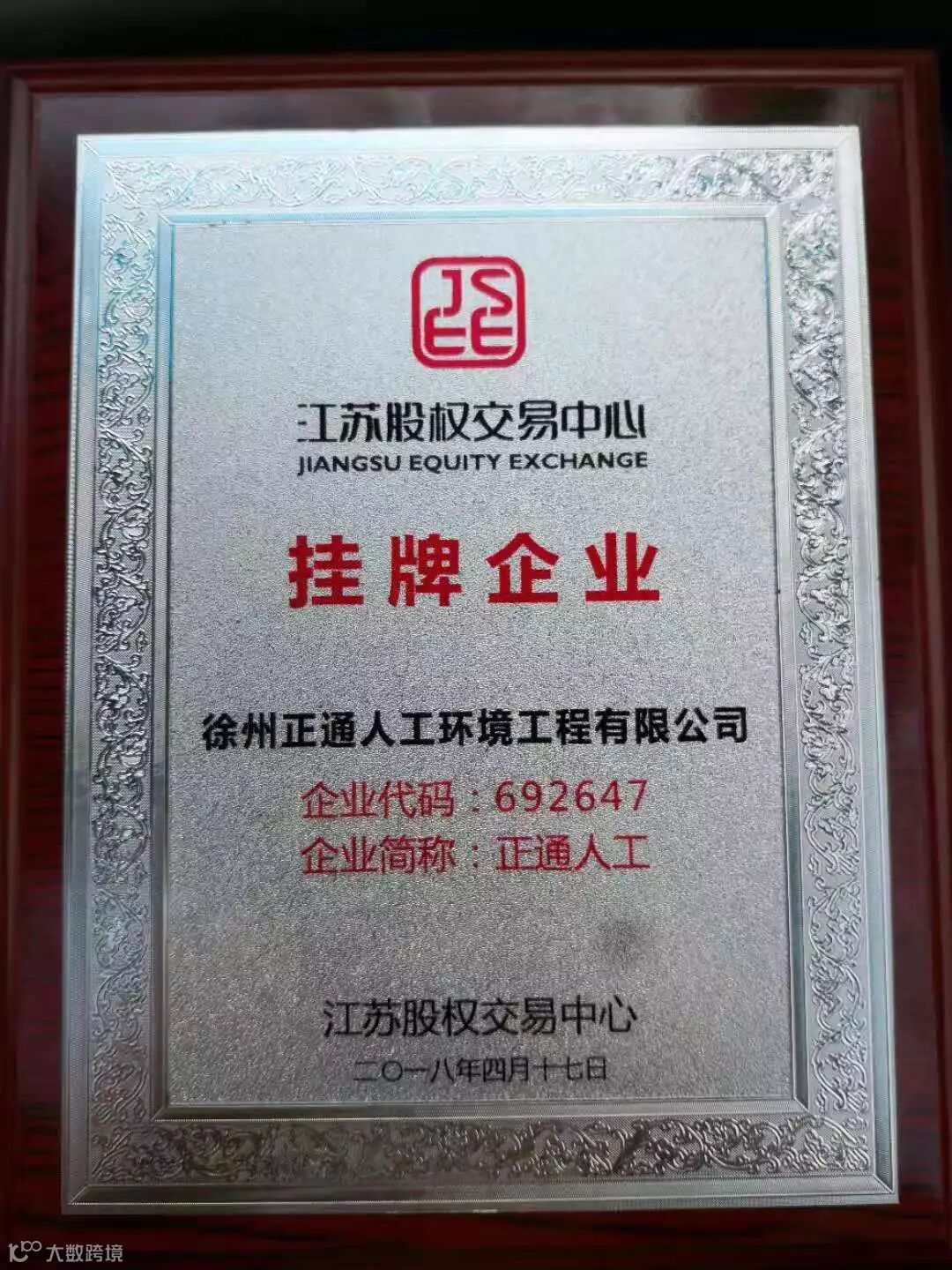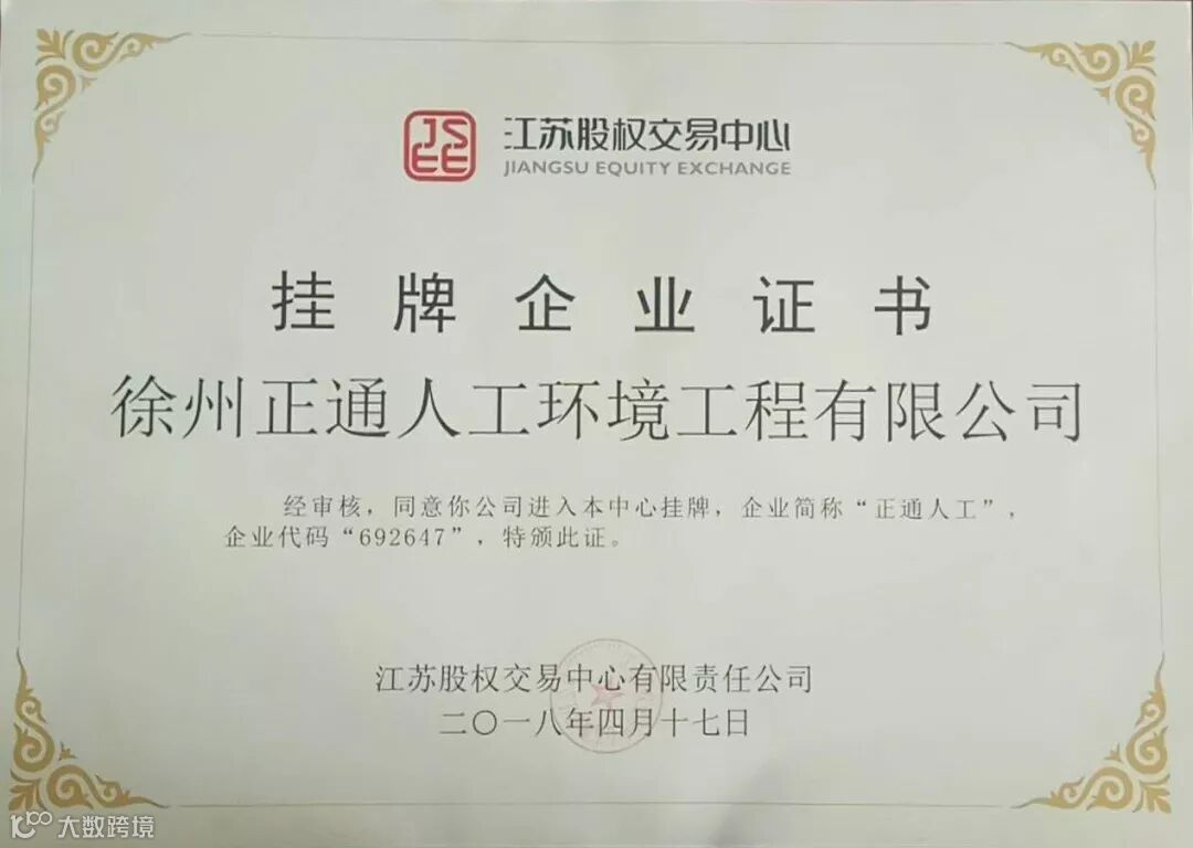 导读:徐州正通人工环境工程有限公司在江苏股权交易中心挂牌成功!
