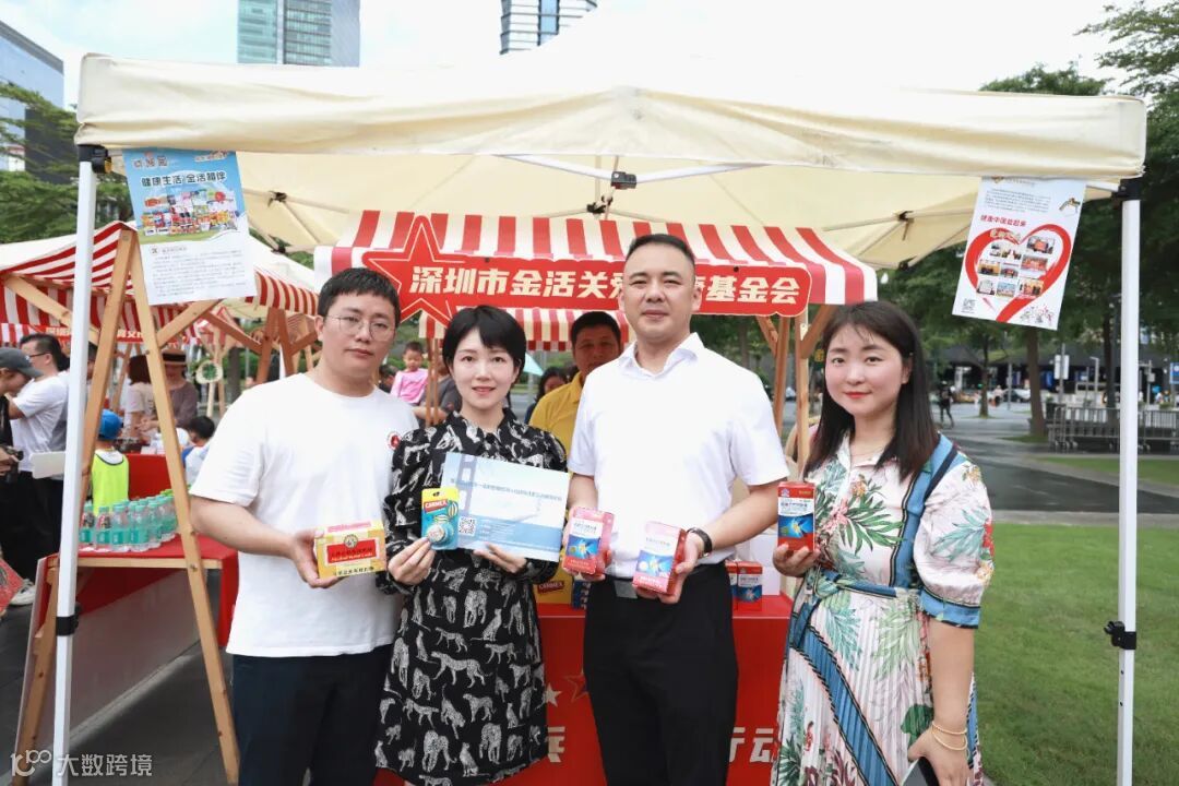 博瀚总经理杨威在现场主动献爱心,于泸宜遵、外婆关爱基金、深圳市金活关爱健康基金会、深圳市添美特科技有限公司、荷禧茶舍等爱心摊位前主动购买万元爱心物资,