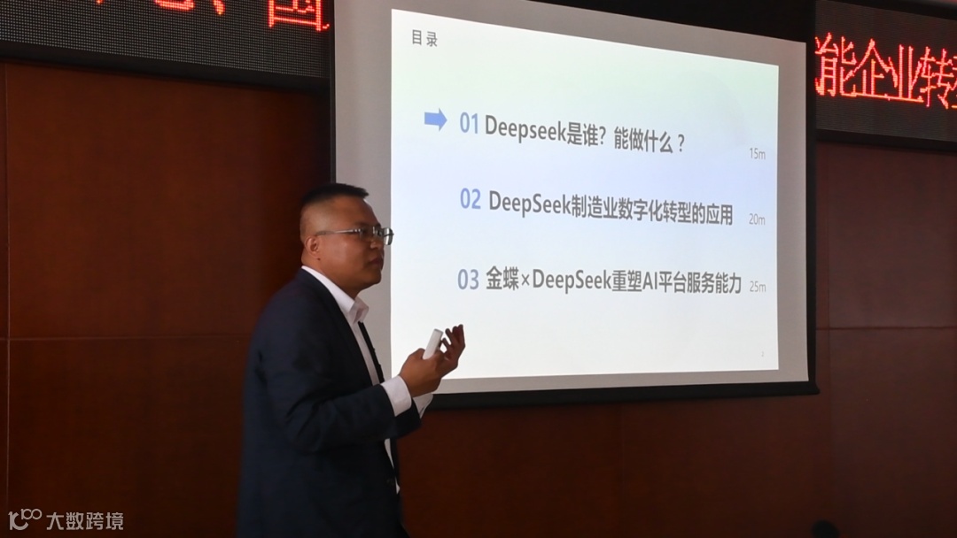 为积极响应制造业数字化转型的时代号召,国宏公司围绕“DeepSeek赋能制造业数字化转型应用”主题,于2025年4月11日在创业大厦承办开展“DeepSeek应用技能提升及赋能制造业数字化转型专题培训”活动,特别邀请金蝶软件(中国)有限公司资深解决方案专家担任主讲嘉宾,在培训中进行全面深入的专题讲解。