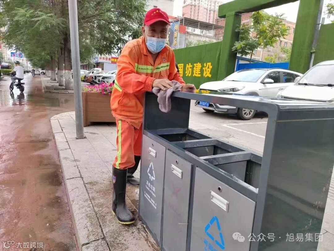 垃圾桶、果皮箱、广告牌作为城市垃圾收集与宣传的重要设施,其卫生状况直接影响着城市的整洁度。环卫工人们定期对其进行擦拭和清洗工作,确保垃圾桶、果皮箱干净无异味,广告牌干净明亮无污渍,为群众提供一个良好的垃圾投放与视觉感官环境。