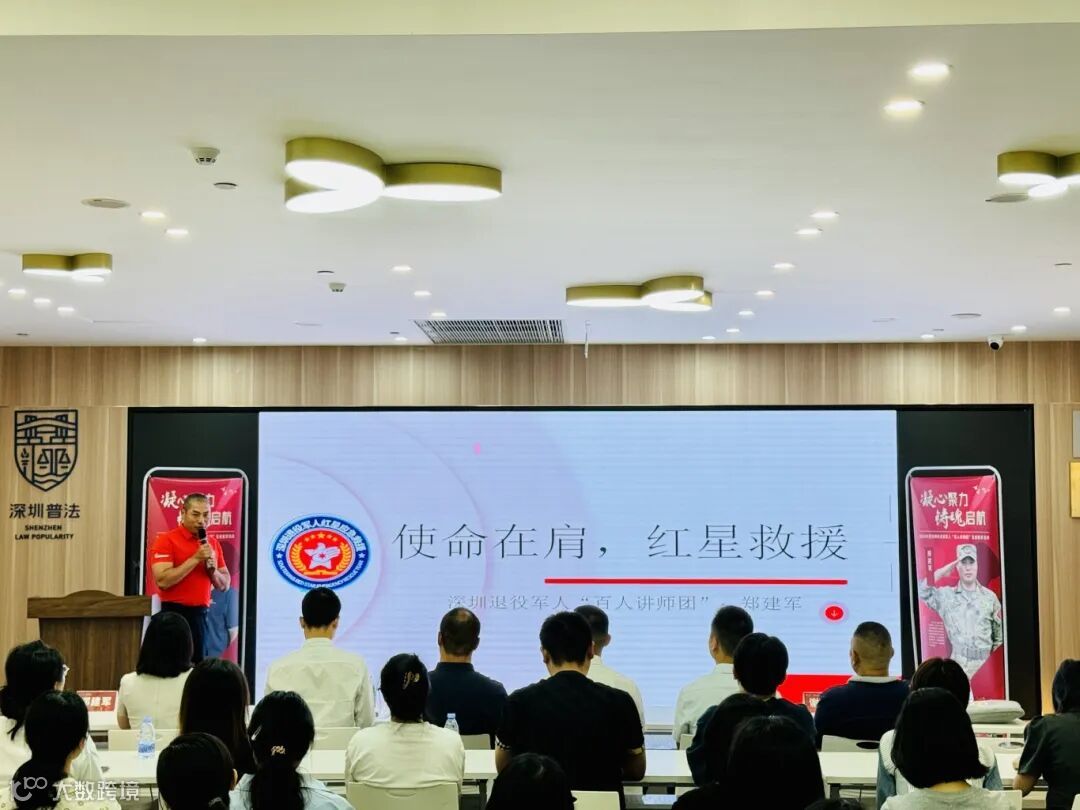 随后,郑建军以《使命在肩,红星救援》为主题上台宣讲,讲述了他在退役后创建深圳市退役军人红星应急救援队,带领队员在开展抢险救灾、应急救援等急难险重任务中发生的动人故事。两位讲师声情并茂地宣讲,台下近百名员工全神贯注地聆听,现场掌声不绝于耳。