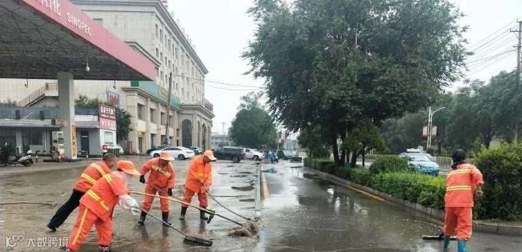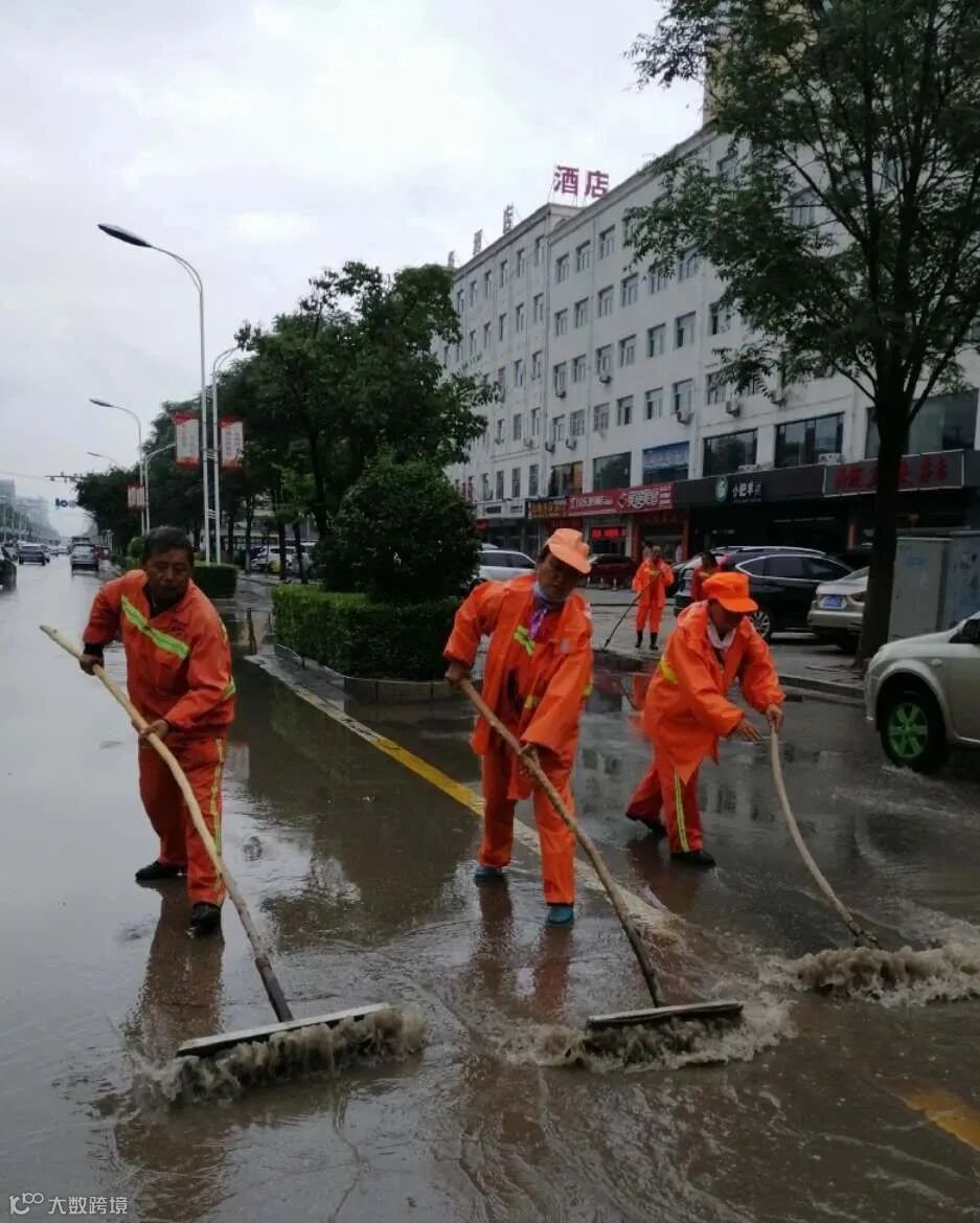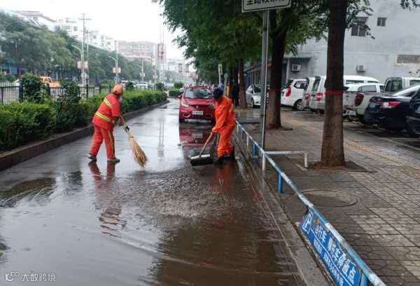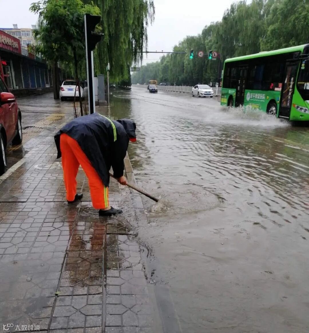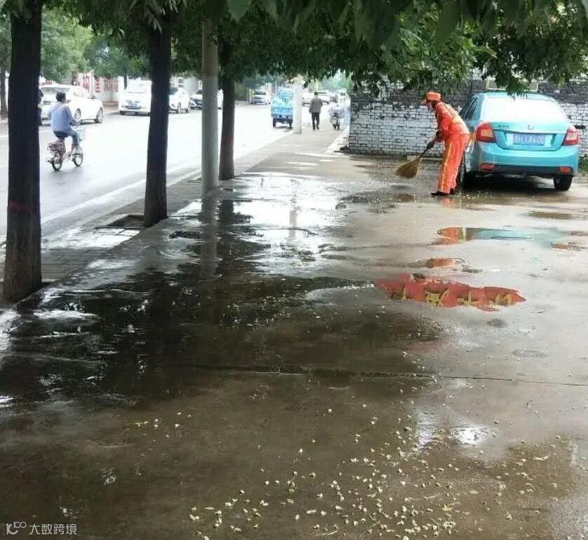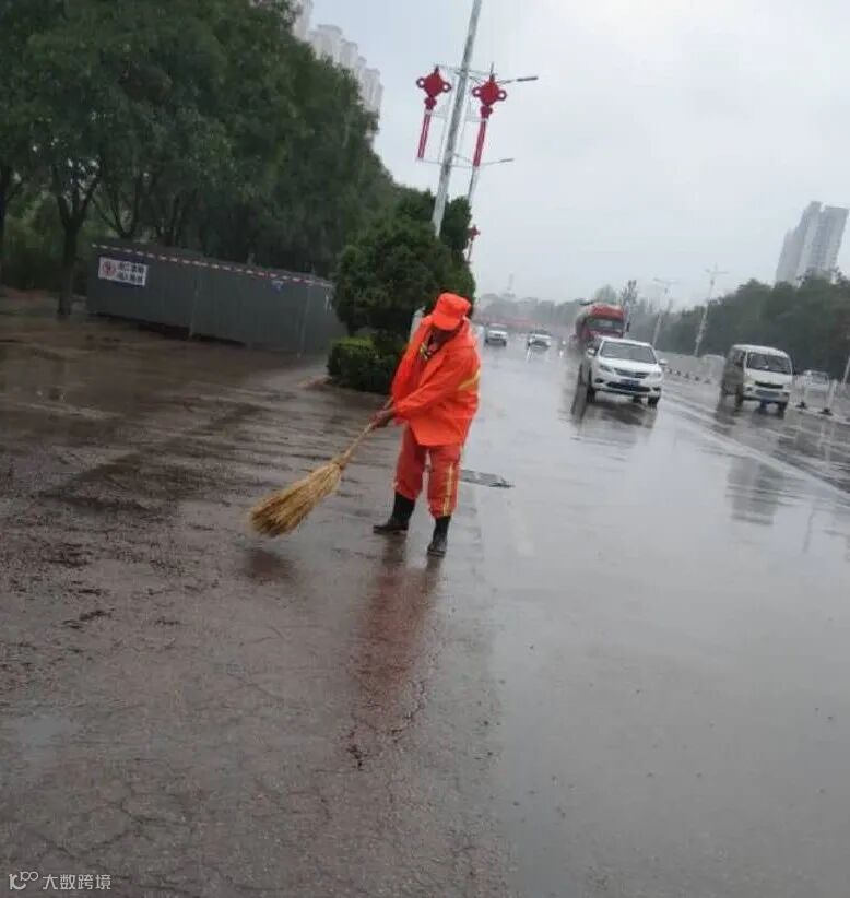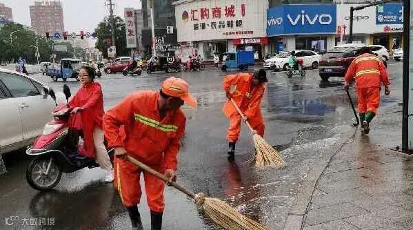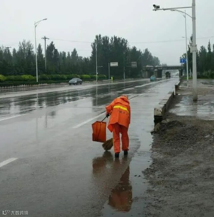 虽然雨天作业,给环卫工人增加了难度,但是他们并没有退缩,为了尽快清淤排除积水和杂物,恢复城市整洁容貌,保障市民正常出行,他们冒雨坚守岗位,哪里有状况遍冲到哪里!他们用自己的双手,采取推、铲、扫的办法,及时清除了道路积水杂物和安全隐患,他们本着“一人脏换来万人洁”的信念,不怕苦累,恪尽职守,辛勤的扮靓着这座城市!城市因你们更加美丽!为你们的付出点赞!
