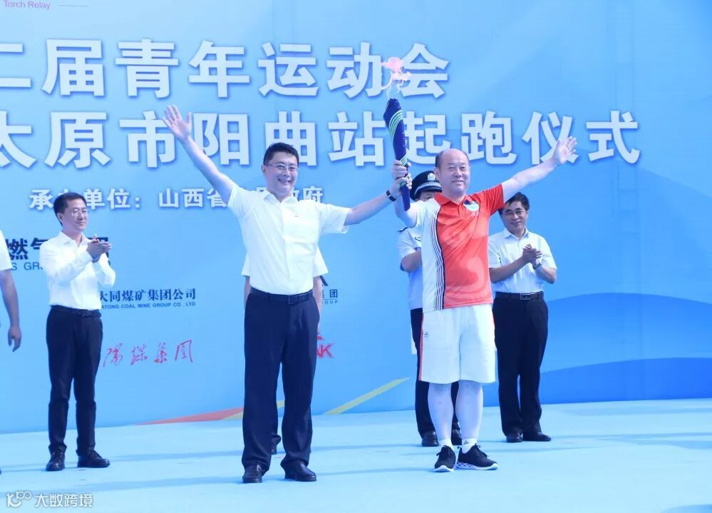 8月1日,二青会实体火炬在太原市阳曲站传递。