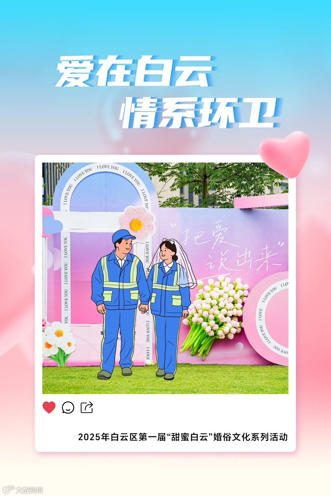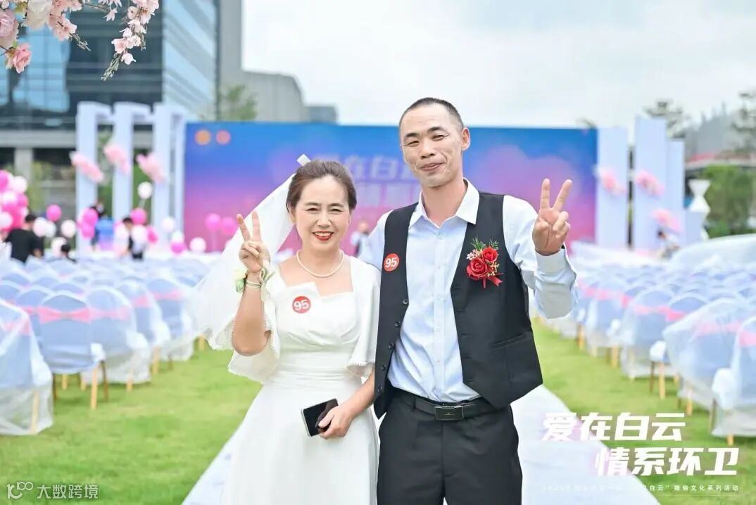 5月20日,由白云区总工会、白云区城市管理和综合执法局、白云区民政局联合主办,白云区环卫工联会、白云区环卫协会承办的“爱在白云·情系环卫”致敬城市美容师集体婚礼庆典活动在白云艺术广场举行,100对携手相伴多年的环卫工人夫妻齐聚广场,一起重温幸福与甜蜜。