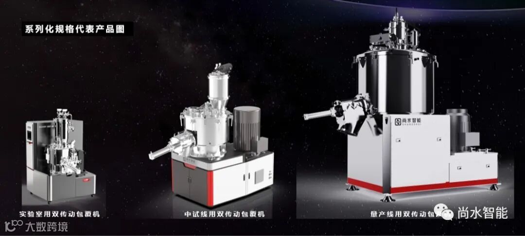 尚水智能自2019年推出双传动包覆机,到现在已积累大量实践案例,完成了不同物料的全场景验证。尤其适用于动力锂离子电池正负极材料的表面包覆,能够对正负极材料的活性物质颗粒表面进行高效均匀的包覆,极大提高正负极材料的性能。目前尚水智能双传动包覆机最大全容积高达2000L,最小全容积可小至10L。可以根据不同场景,进行专业定制化的设计。