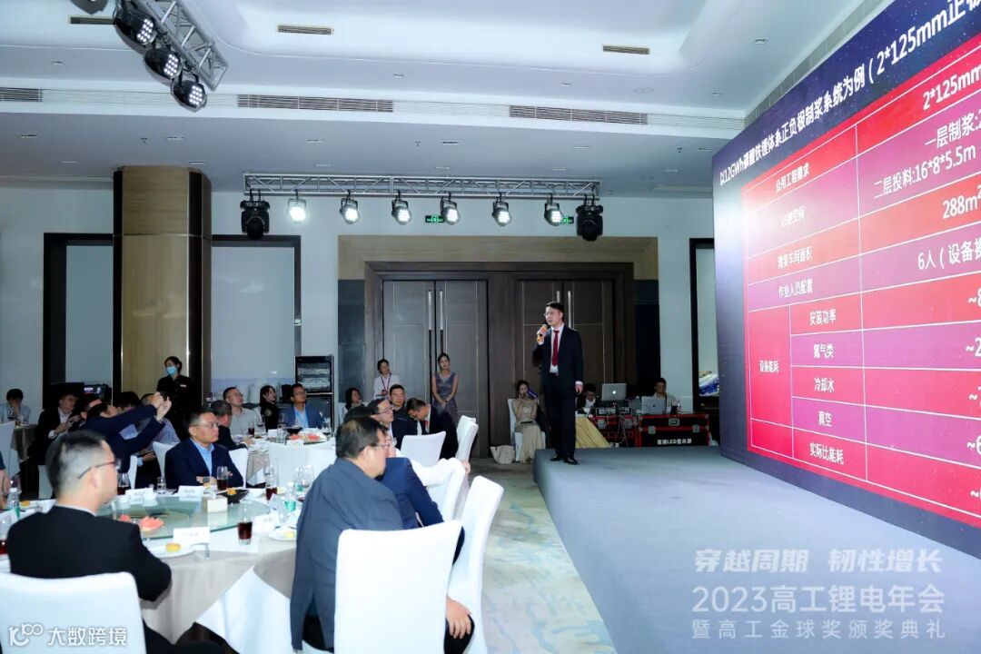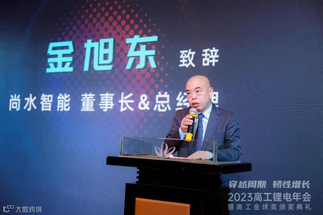 高工锂电董事长 张小飞博士 为发布会致辞。张小飞博士表示,连续三年每年都能够发布新品的企业创新和智能制造的变革能力令人尊敬。尚水智能发展迅速,获得动力电池、储能电池、正负极材料等企业的高度认可,产品达到了一定的境界,引领了行业的进步,十分难能可贵。
