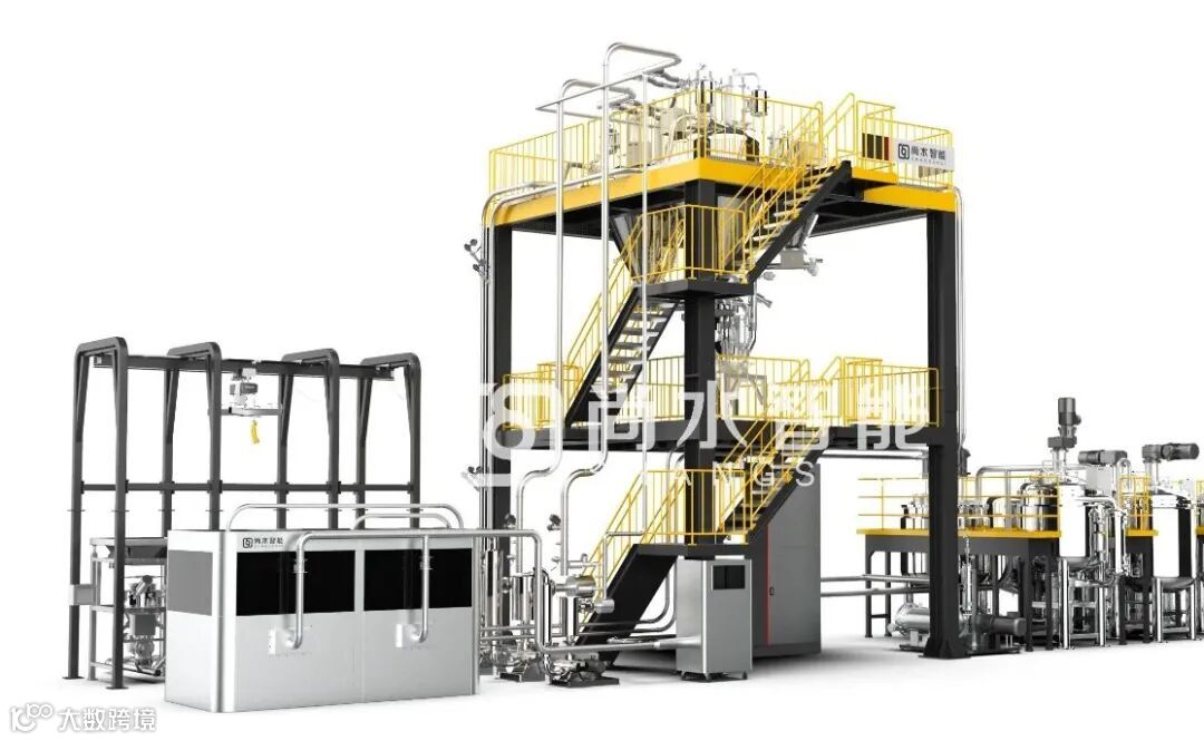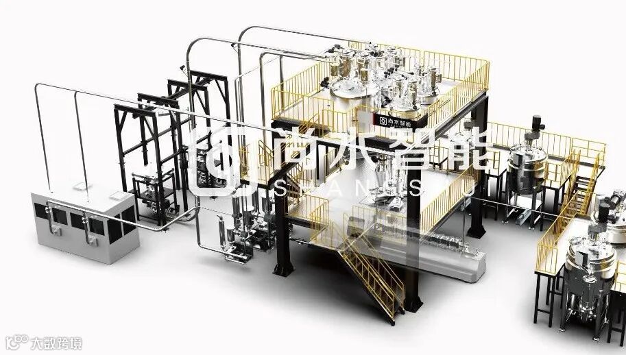 尚水智能开发了循环分散并行技术,采用循环式高效制浆机进行粉液混合、在线分散机进行精细循环分散,将传统“粉液混合+循环分散”的串行工艺调整为“粉液混合//循环分散”并行工艺,优化了制浆节拍,显著提升了制浆效率和系统产能。该系统的其他亮点包括:多类型分散模块、全自动吨包上料系统及全方位的工艺支持等,最大落地机型为2500L。
