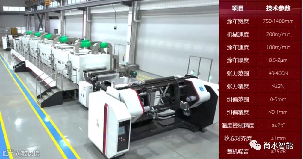 针对传统凹版涂布效率低、能耗高、精度差、涂布液暴露等问题,尚水智能开发了新型涂布设备,采用微凹版涂布技术,能够实现高速高精度的双面同时涂布功能,适用于锂离子电池的正负极导电碳底涂、隔膜陶瓷涂布等。
