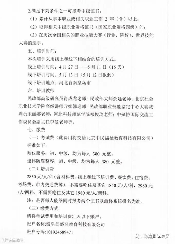 海涛国际集团第二期培训班补充通知