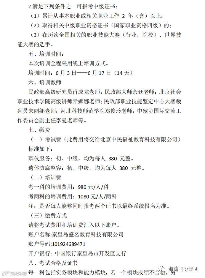 目前,海涛国际集团作为省级培训考试基地,负责全国社会考生培训考试第三期培训班正在火热报名中,具体内容如下: